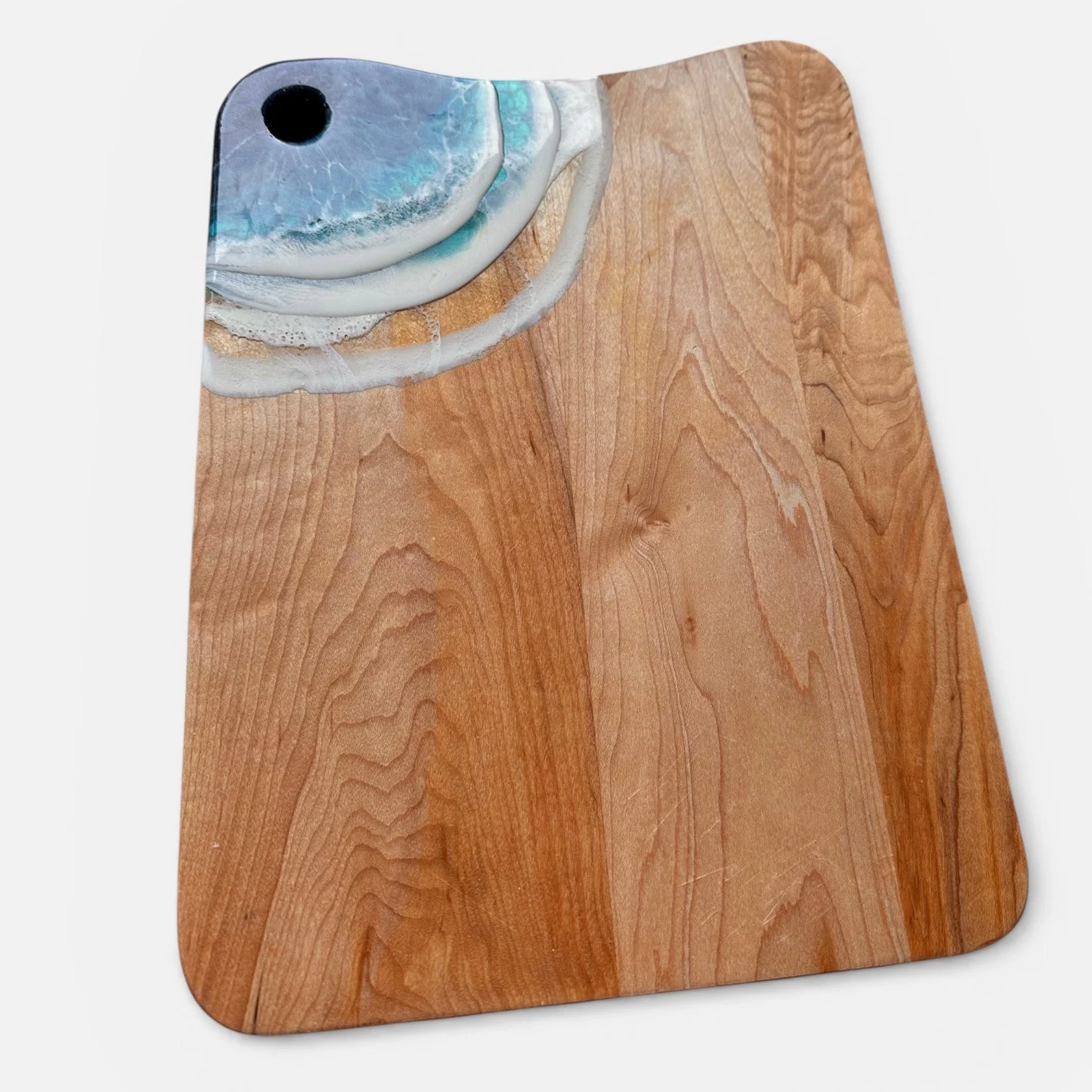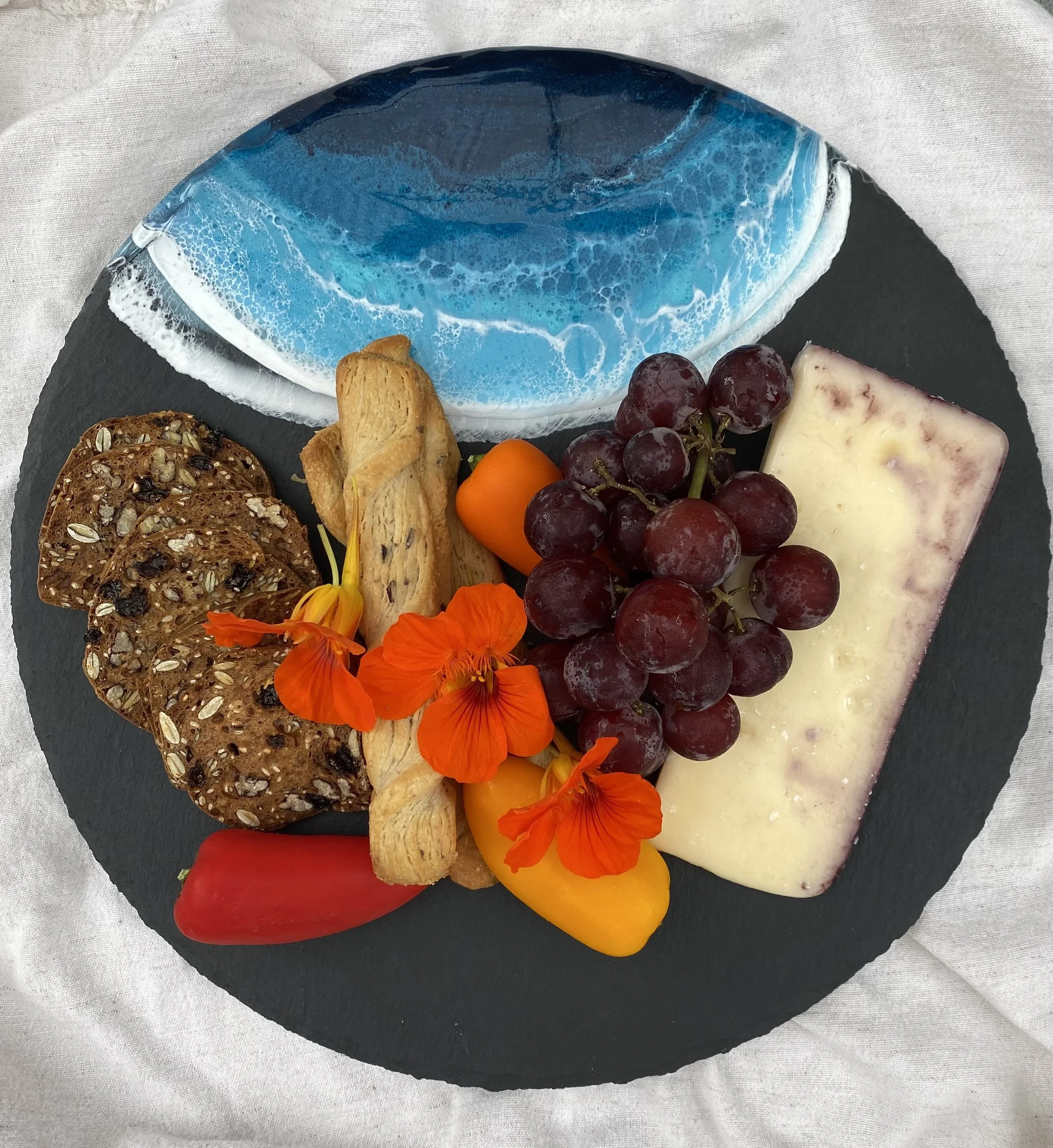 When I sell my Ocean Boards at the markets and craft shows, many people react by saying "It’s too beautiful, I will display it, but not use it"! I always reply by saying "It is meant to be used"!! Serving food on your ocean board will leave some stains, some grease marks and maybe some cuts from the knife (do not cut on the resin!). The first ones will stand out like a sore thumb but the more you use it, the more character it will have and the more stories it will tell. There is nothing like a well loved, well seasoned wooden board! That, and wood can dry if not used. The food will add some natural oils into the wood of your Ocean Board.